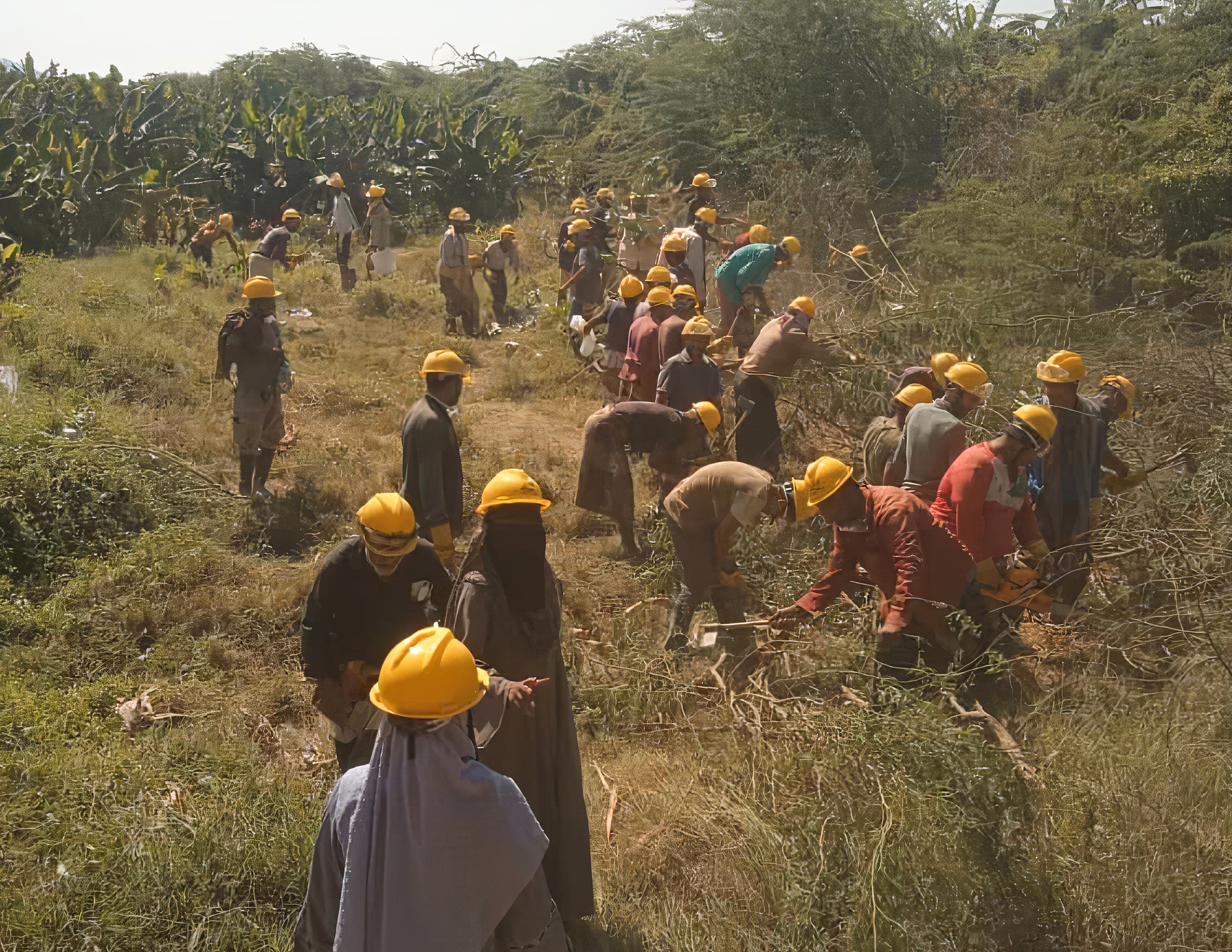 نساء ريفيات ورجال ضمن مشروع النقد مقابل العمل الذي أشرفت عليه أسرار في منطقتها بأبين (صورة أرشيفية)