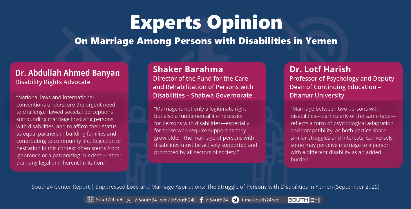 Dr. Abdullah Ahmed Banyan, a disability rights advocate, told ‘South24’ that the legal and international provisions leave no room for doubt regarding the legitimacy of marriage for persons with disabilities. He stated: