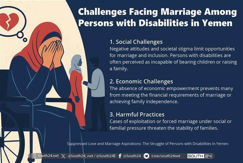 From a psychological standpoint, Dr. Lotf Harish, Professor of Psychology and Deputy Dean of Continuing Education at Dhamar University, observes that some persons with disabilities tend to seek relationships with partners who share the same type of disability, believing it fosters greater emotional harmony and mutual understanding.