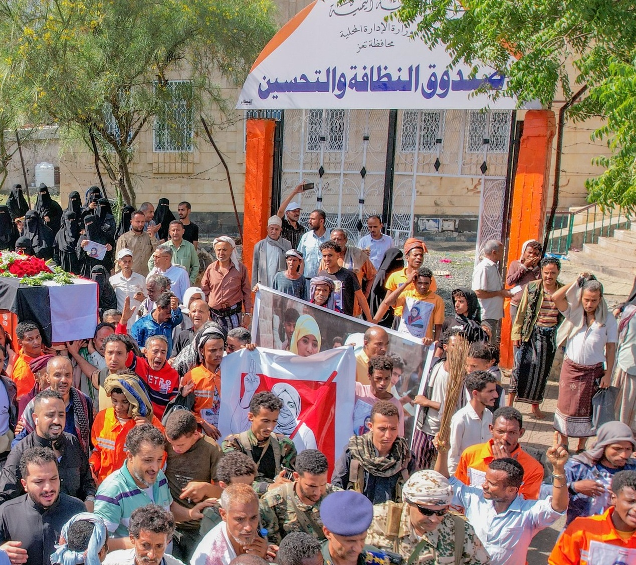 Thousands of citizens gathered on Tuesday morning, September 30, for the funeral of Iftihan Al-Mashhari, Director of the Taiz Cleanliness Fund, who was shot dead in a dastardly attack on September 18.