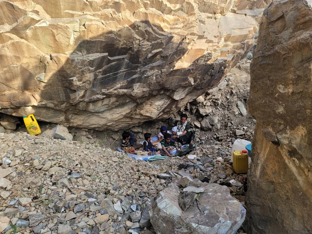 Displaced persons stranded in the mountains without tents (For South24 Center by Sheikh Ammar Al-Howshabi)