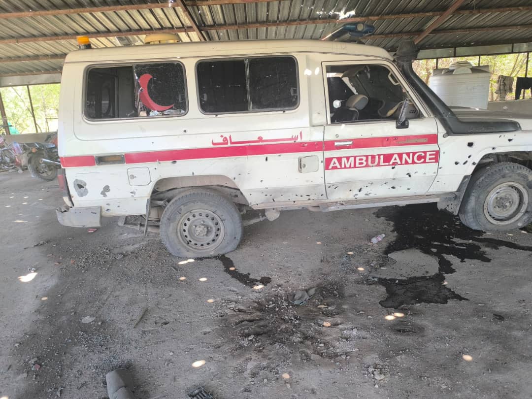 The attack resulted in the death of paramedic Ahmed Mohsen Al-Jabily (25 years old) from Jahaf district and left eight other medical crew members with serious injuries.